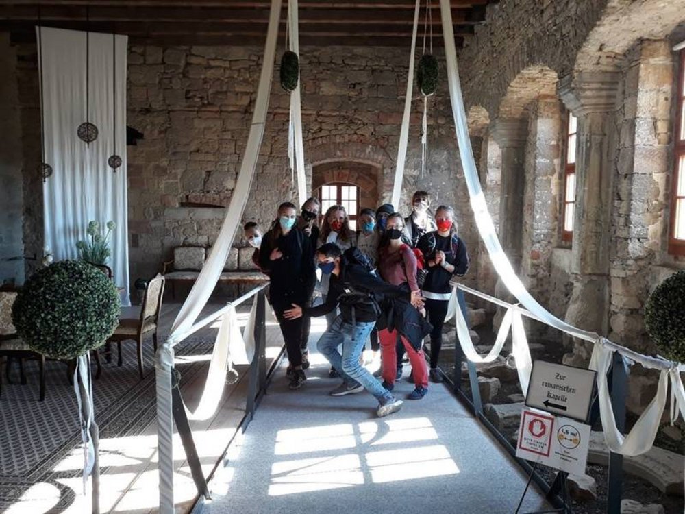 So hatten wir trotz Corona einen Reiseleiter, der uns die Legende vom „Leckarsch“ nahegebracht hat. Nach der Einführung und einige Stücken Kuchen später haben wir uns dann auch das Schloss von innen angeschaut. Es gab Verliese, einen Festsaal und vieles mehr zu sehen. Auch den Turm stiegen wir nach oben. Da es schönes Wetter war, hatten wir einen super Ausblick auf ganz Kranichfeld und Umgebung. Nach unserer Besichtigung wollten wir dann eigentlich noch mal auf den Spielplatz, um die halbe Stunde zu überbrücken, die wir noch hatten, bis uns unser Zug wieder nach Hause bringen sollte.
