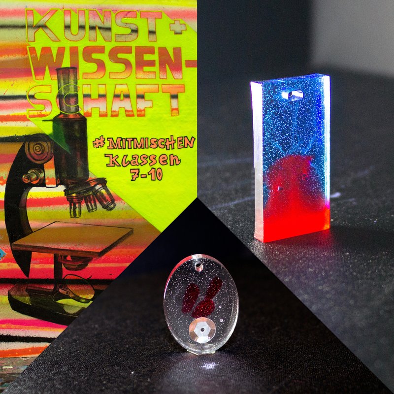 In der AG Kunst + Wissenschaft (Klassenstufe 7-10) besteht das interdisziplinäre Zusammenarbeiten im Wesentlichen darin, Problemstellungen aus der Lebenswirklichkeit der Schüler*innen gemeinsam zu untersuchen und zu erforschen. Die Fähigkeit zum entdeckenden und forschenden Lernen wird durch motivierende Einführungen in die Themen der Kunst und Naturwissenschaft gefördert. Im Verlauf der AG entwickeln die Schüler*innen selbstständig themenbezogene Ideen. Mithilfe der AG-Betreuer werden daraufhin Möglichkeiten zur Umsetzung gesucht. Der erste Themenkomplex befasste sich mit der Entwicklung eines Duschgels: die Entwicklung von Konzepten zum Marketing (z.B. attraktives Produktdesign) und zur Herstellung (z.B. Herstellung eigener Seifen/Cremes und Duftstoffe im Chemieraum). Die Entwicklung eines Schmuckdesigns und die praktische Umsetzung dessen mithilfe moderner Werkstoffe unterstreicht die Verbindung von Fachwissen und schöpferischer Fantasie. Der Hauptfokus der AG liegt auf der Förderung der Aneignung ausgewählter Fachinhalte und eine damit verbundene Erweiterung von Gedankenstrukturen zur verbesserten Wahrnehmung des Alltags der Schüler*innen.